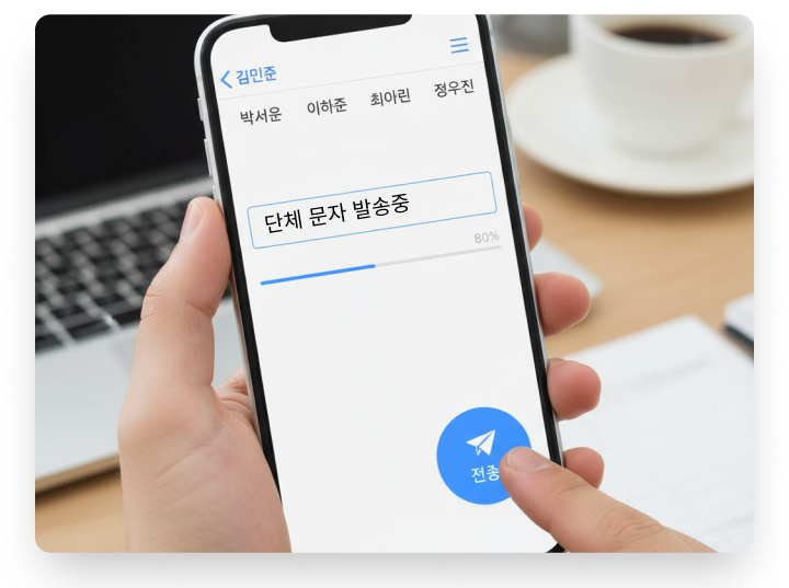 대규모 알림문을 지연 없이 빠르고 안정적으로. 대용량 문자로 모든 구분소유자에게 확실히 전달하세요.